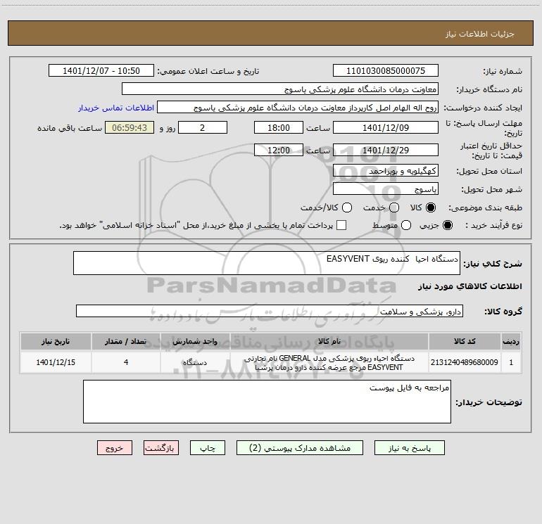 نام دستگاه خریدار:معاونت درمان دانشگاه علوم پزشکی یاسوج