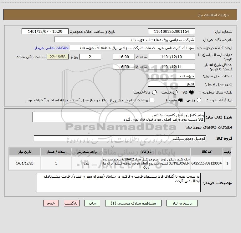 شرح کلی نیاز: وینچ کامل جرثقیل کامیون ده تنی