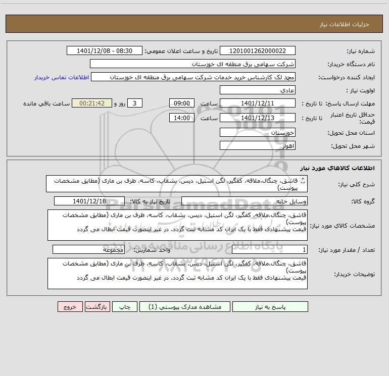 نام دستگاه خریدار:شرکت سهامی برق منطقه ای خوزستان