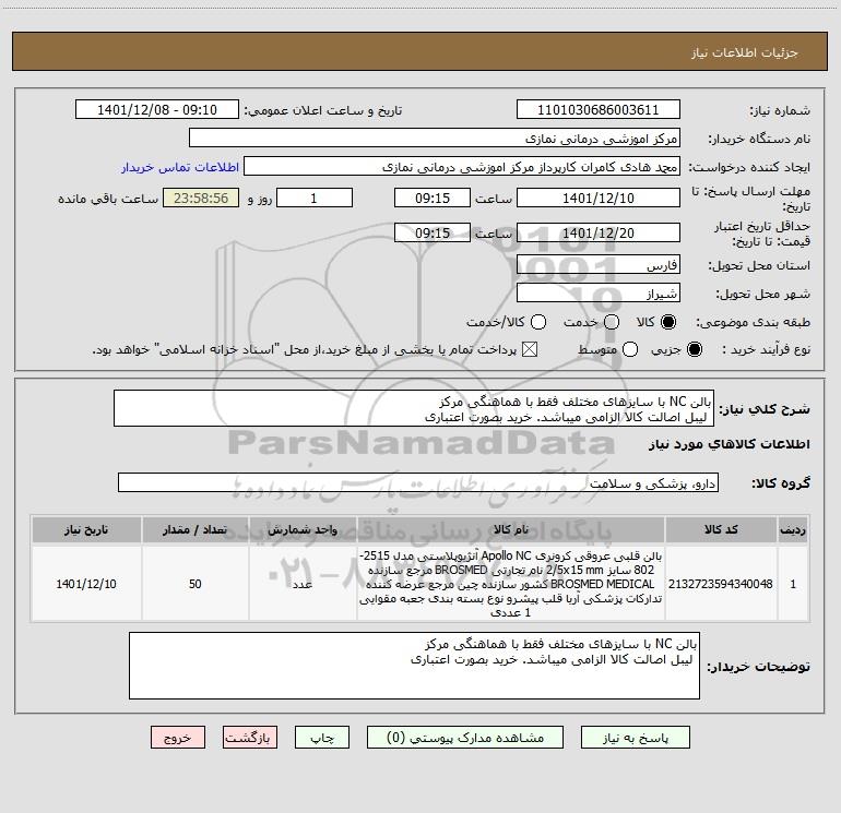 نام دستگاه خریدار:مرکز اموزشی درمانی نمازی