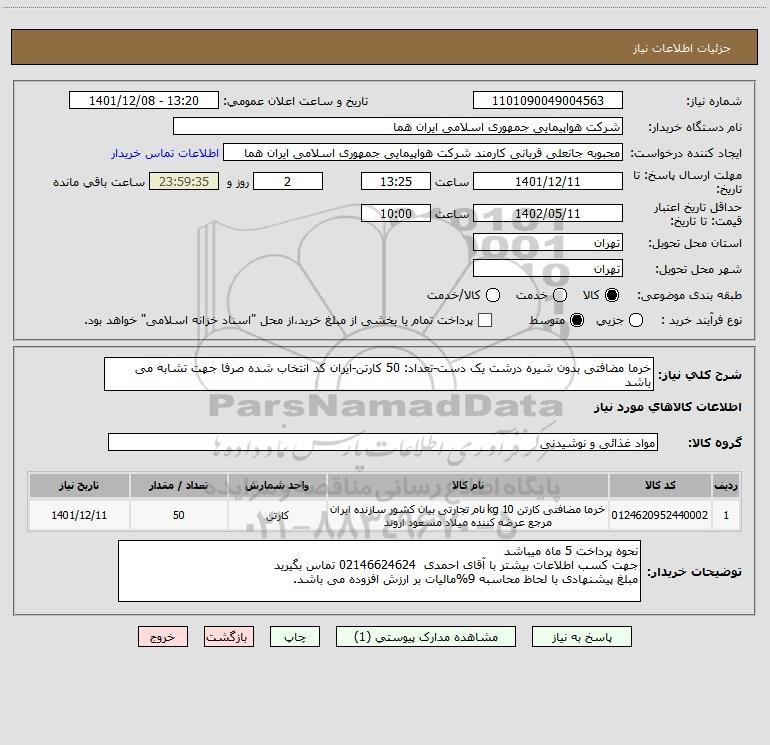 نام دستگاه خریدار:شرکت هواپیمایی جمهوری اسلامی ایران هما