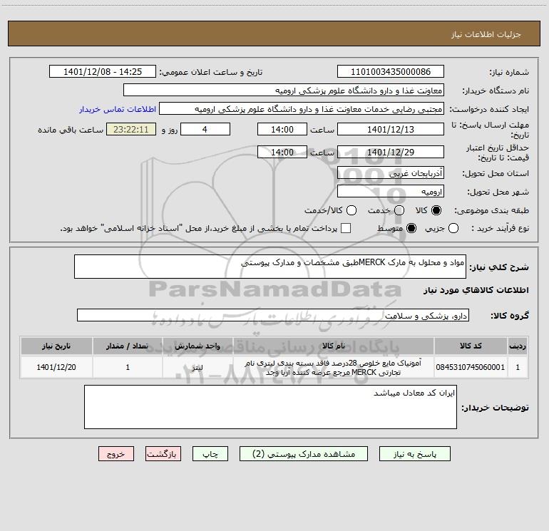نام دستگاه خریدار:معاونت غذا و دارو دانشگاه علوم پزشکی ارومیه