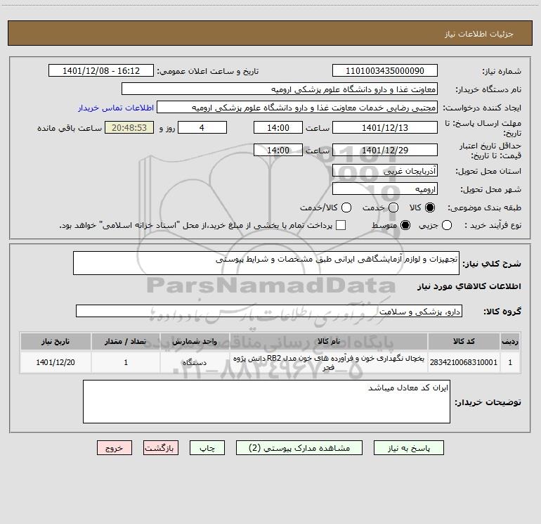 نام دستگاه خریدار:معاونت غذا و دارو دانشگاه علوم پزشکی ارومیه