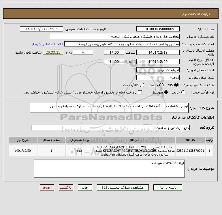 نام دستگاه خریدار:معاونت غذا و دارو دانشگاه علوم پزشکی ارومیه