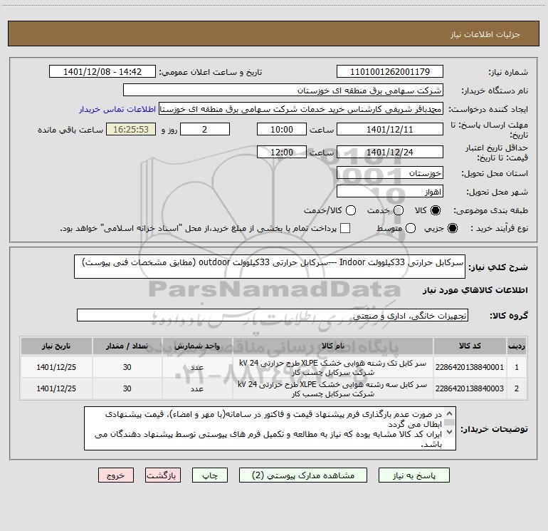 استعلام سرکابل حرارتی 33کیلوولت Indoor ---سرکابل حرارتی 33کیلوولت outdoor (مطابق مشخصات فنی پیوست) ؟