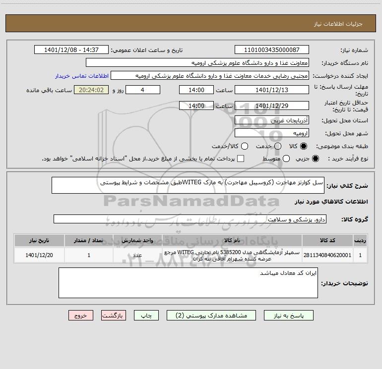 نام دستگاه خریدار:معاونت غذا و دارو دانشگاه علوم پزشکی ارومیه