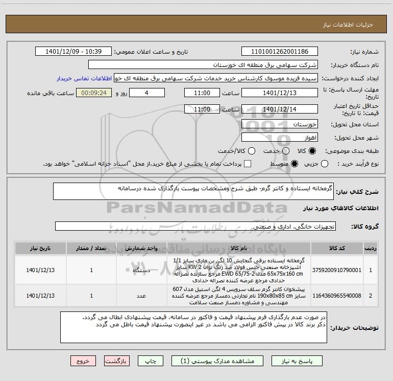 استعلام گرمخانه ایستاده و کانتر گرم- طبق شرح ومشخصات پیوست بارگذاری شده درسامانه, استعلام گرمخانه ایستاده و کانتر گرم- طبق شرح ومشخصات پیوست بارگذاری شده درسامانه