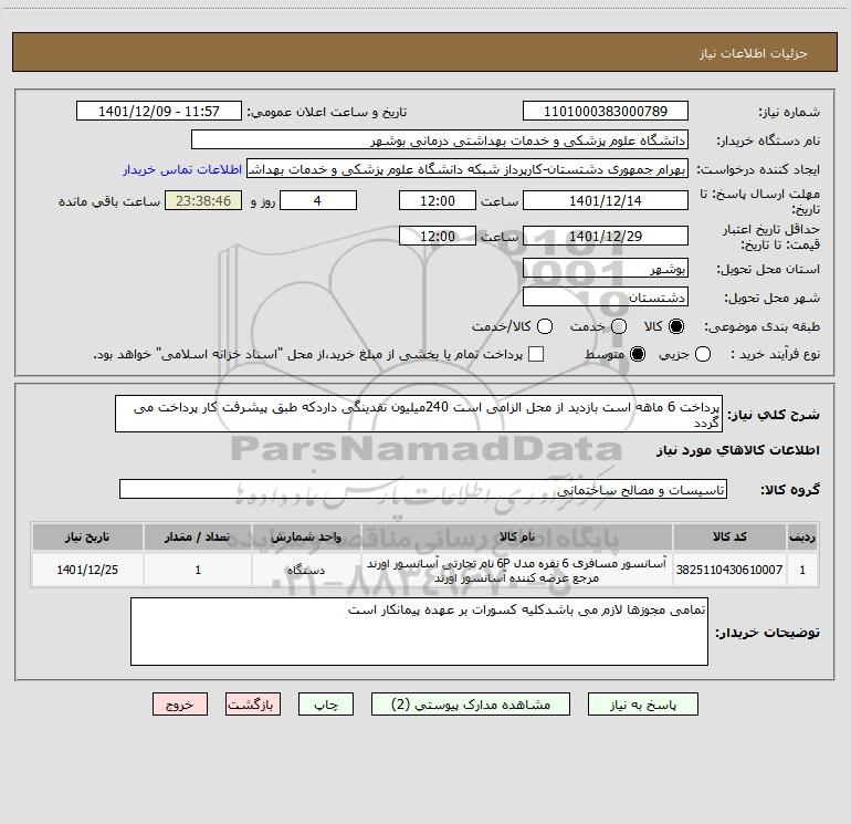 نام دستگاه خریدار:دانشگاه علوم پزشکی و خدمات بهداشتی درمانی بوشهر