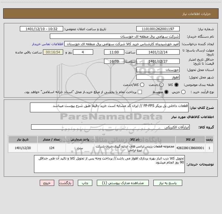 شرح کلی نیاز: قطعات داخلی پل بریکر FP-FPS // ایران کد مشابه است خرید دقیقا طبق شرح پیوست میباشد