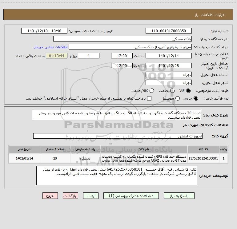 شرح کلی نیاز: تعداد 20 دستگاه گشت و نگهبانی به همراه 50 عدد تگ مطابق با شرایط و مشخصات فنی موجود در پیش نویس قرارداد پیوست.