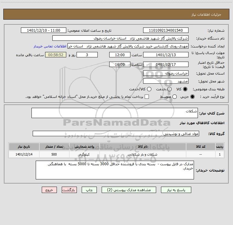 نام دستگاه خریدار:شرکت پالایش گاز شهید هاشمی نژاد استان خراسان رضوی