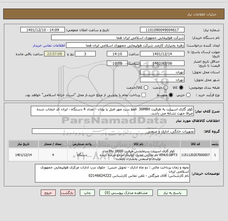 نام دستگاه خریدار:شرکت هواپیمایی جمهوری اسلامی ایران هما