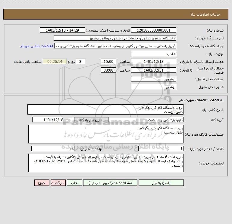 نام دستگاه خریدار:دانشگاه علوم پزشکی و خدمات بهداشتی درمانی بوشهر