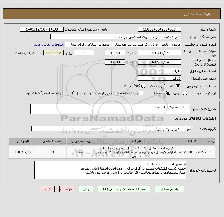 نام دستگاه خریدار:شرکت هواپیمایی جمهوری اسلامی ایران هما
