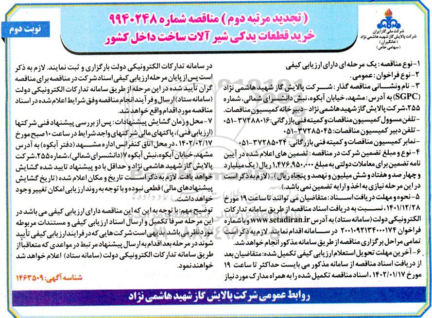 (تجدید مرتبه دوم) مناقصه شماره 9940248 ؟