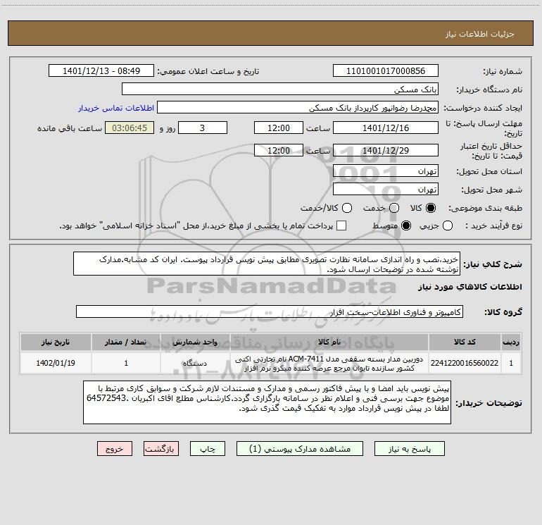 شرح کلی نیاز: خرید،نصب و راه اندازی سامانه نظارت تصویری مطابق پیش نویس قرارداد پیوست. ایران کد مشابه.مدارک نوشته شده در توضیحات ارسال شود.