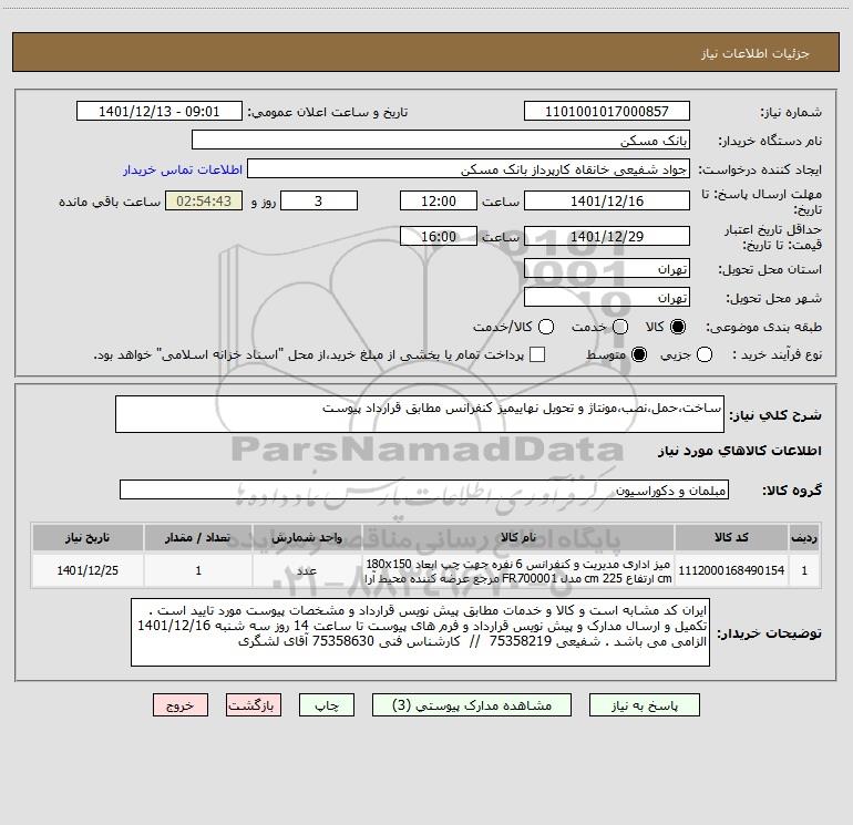 شرح کلی نیاز: ساخت،حمل،نصب،مونتاژ و تحویل نهاییمیز کنفرانس مطابق قرارداد پیوست