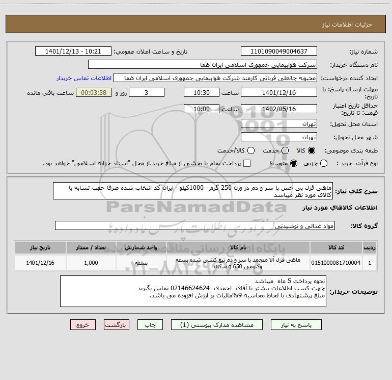 نام دستگاه خریدار:شرکت هواپیمایی جمهوری اسلامی ایران هما