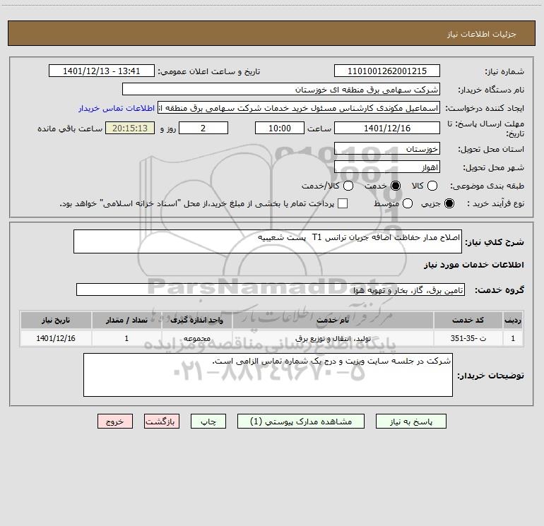 نام دستگاه خریدار:شرکت سهامی برق منطقه ای خوزستان