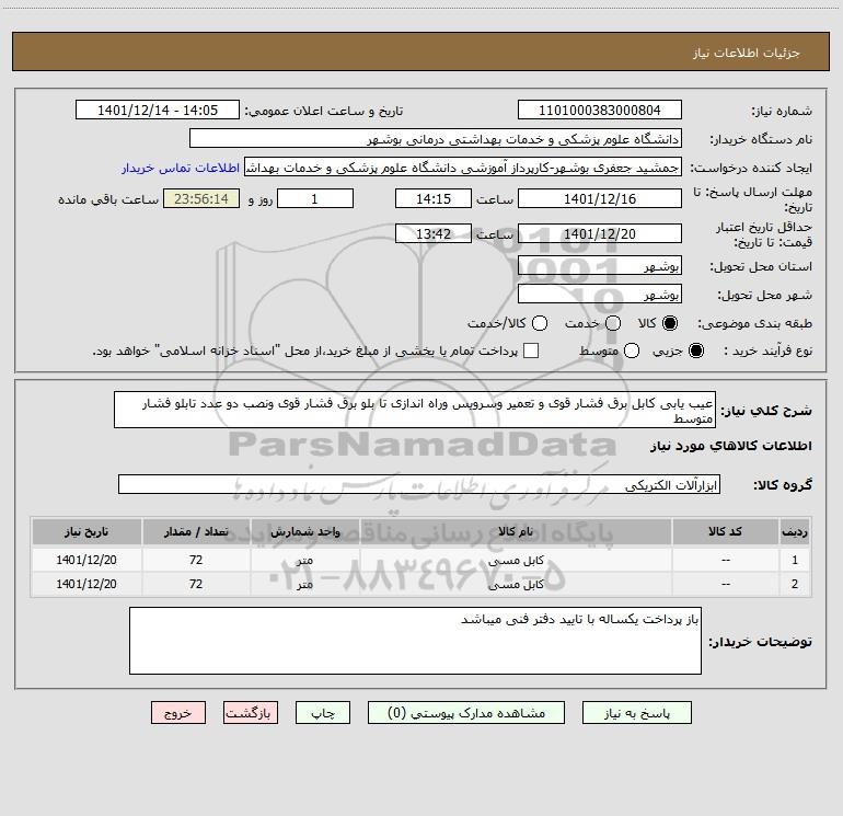 | 2 | -- | کابل مسی | متر | 72 | 1401/12/20 |