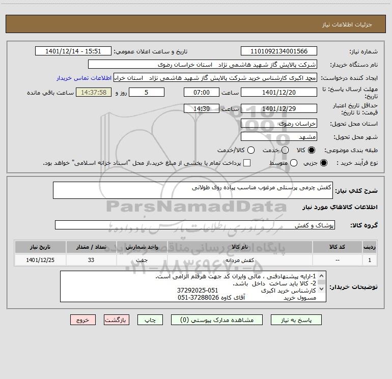 نام دستگاه خریدار:شرکت پالایش گاز شهید هاشمی نژاد استان خراسان رضوی