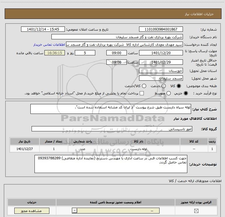 شرح کلی نیاز: لوله سیاه داربست طبق شرح پیوست "از ایران کد مشابه استفاده شده است".