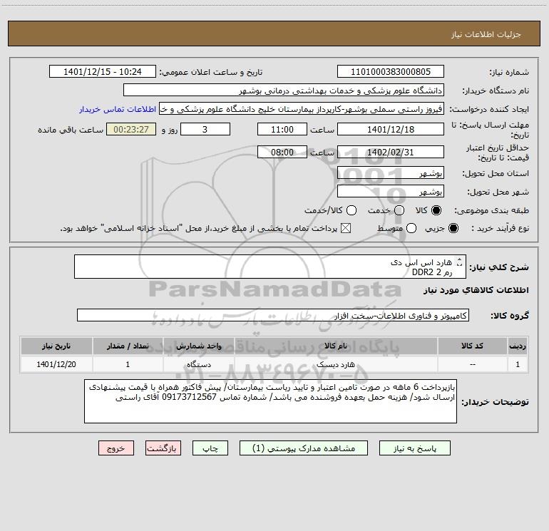 نام دستگاه خریدار:دانشگاه علوم پزشکی و خدمات بهداشتی درمانی بوشهر