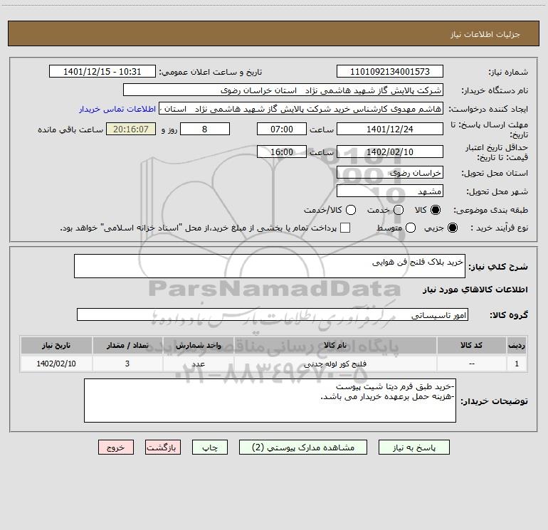 نام دستگاه خریدار:شرکت پالایش گاز شهید هاشمی نژاد استان خراسان رضوی