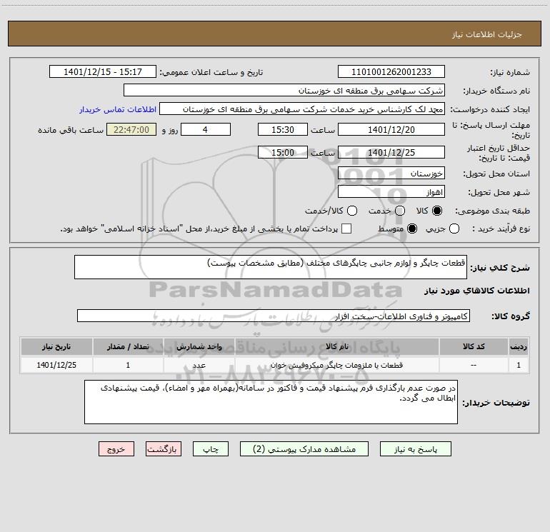 نام دستگاه خریدار:شرکت سهامی برق منطقه ای خوزستان
