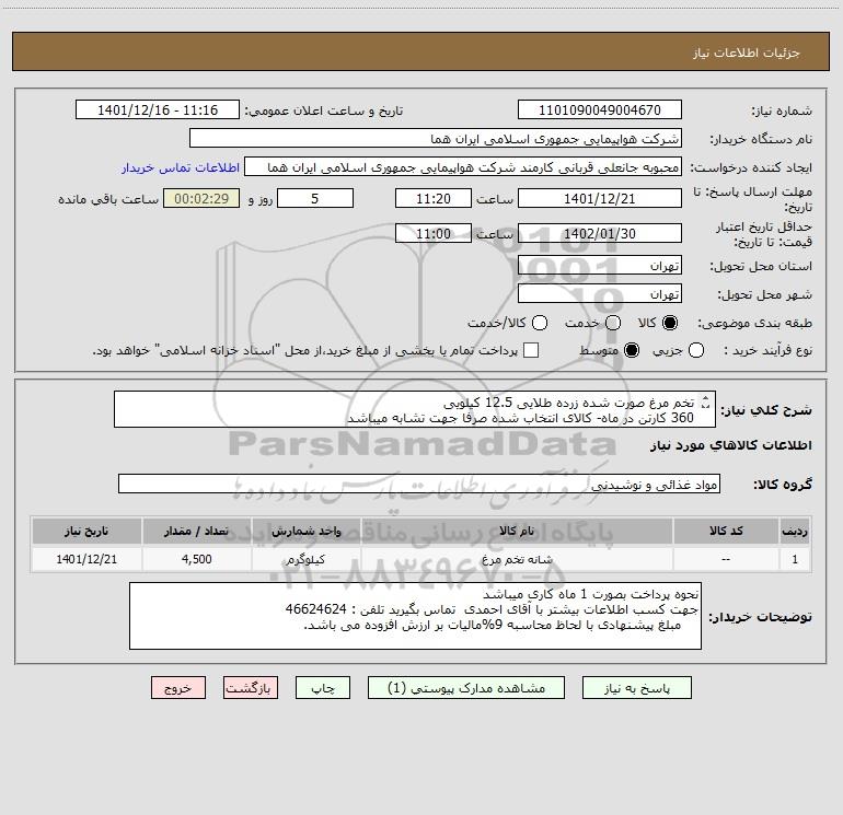 شرح کلی نیاز: تخم مرغ صورت شده زرده طلایی 12.5 کیلویی