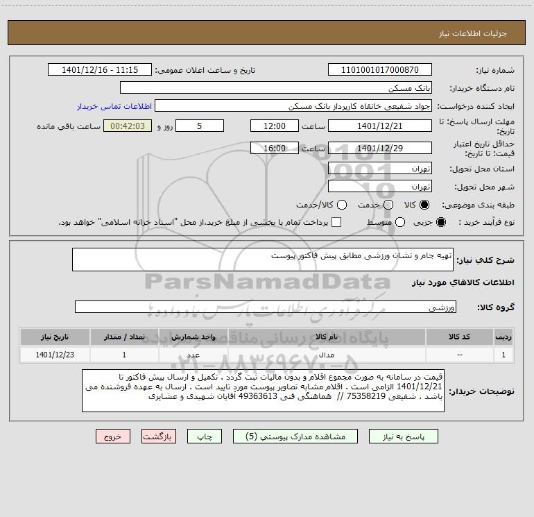 شرح کلی نیاز: تهیه جام و نشان ورزشی مطابق پیش فاکتور پیوست