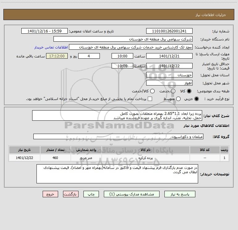 نام دستگاه خریدار:شرکت سهامی برق منطقه ای خوزستان