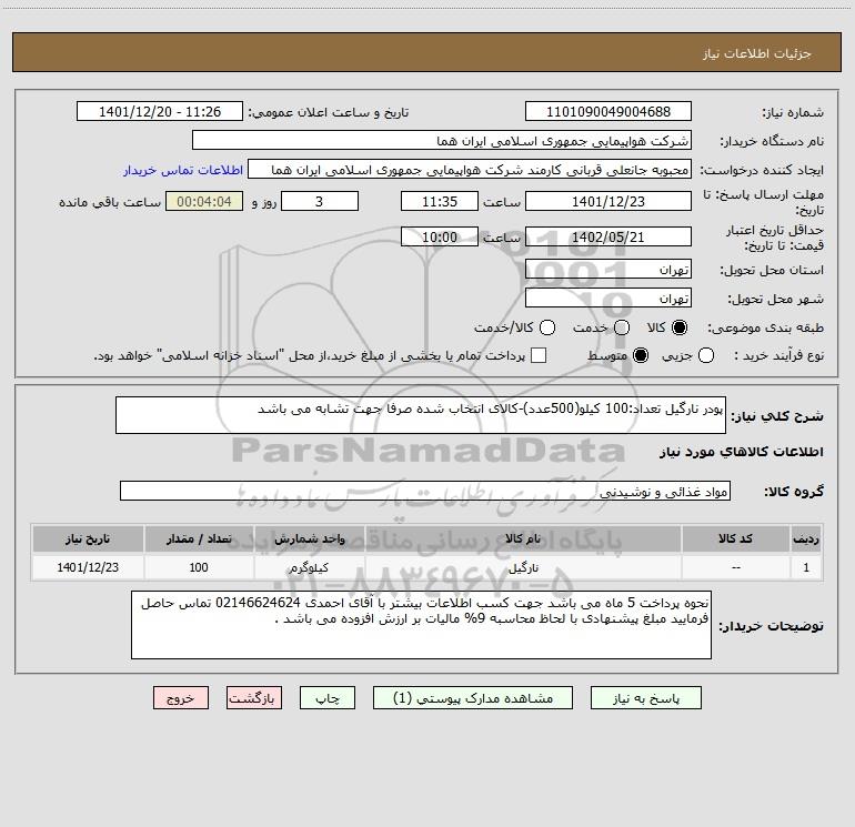 نام دستگاه خریدار:شرکت هواپیمایی جمهوری اسلامی ایران هما