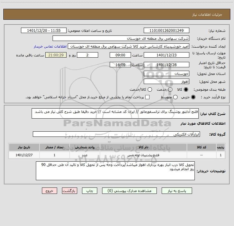 نام دستگاه خریدار:شرکت سهامی برق منطقه ای خوزستان