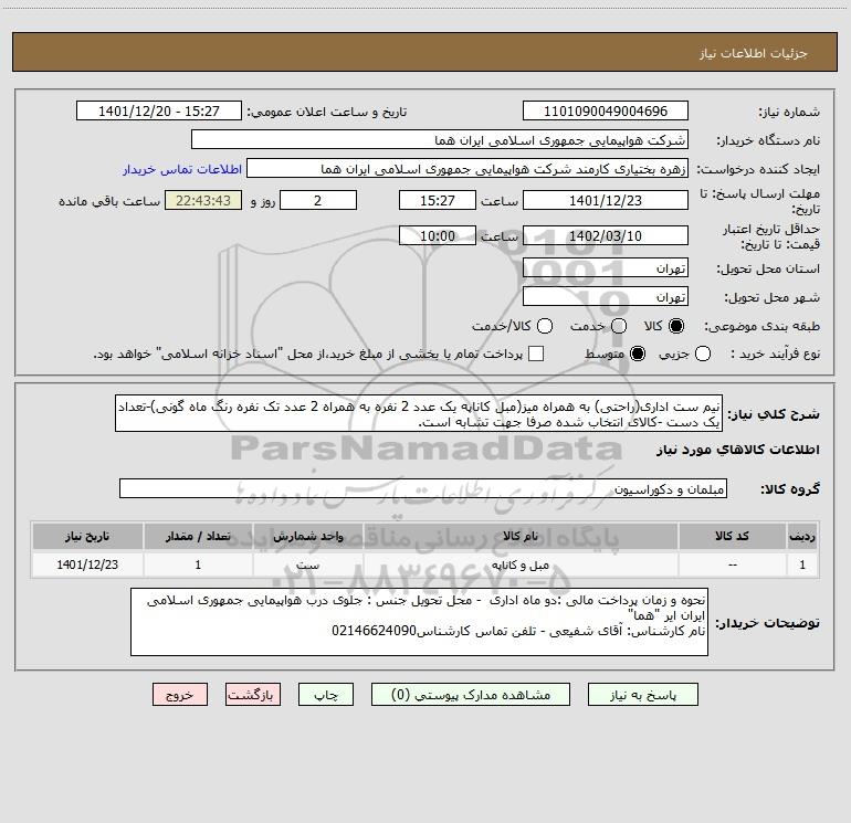 نام دستگاه خریدار:شرکت هواپیمایی جمهوری اسلامی ایران هما