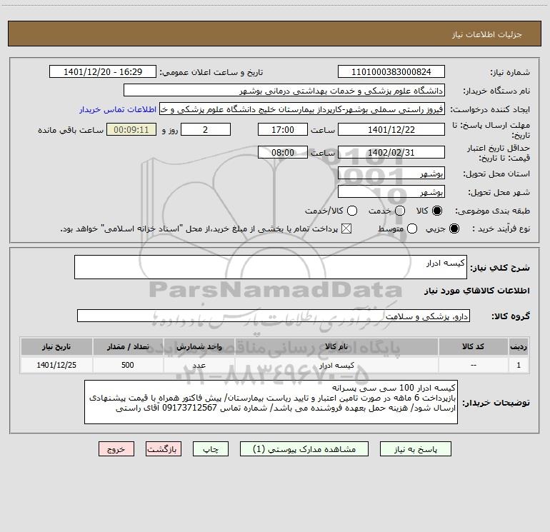 1 -- کیسه ادرار عدد 500 1401/12/25