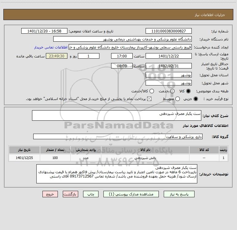 نام دستگاه خریدار:دانشگاه علوم پزشکی و خدمات بهداشتی درمانی بوشهر