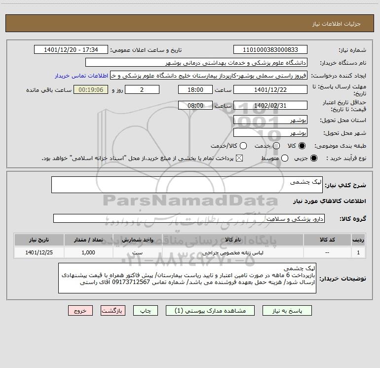 شماره نیاز: 1101000383000833