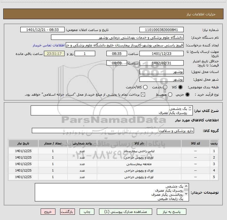 | 5 | -- | اورال و روپوش جراحی | عدد | 1 | 1401/12/25 |