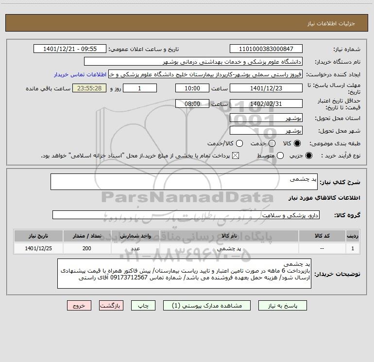 نام دستگاه خریدار:دانشگاه علوم پزشکی و خدمات بهداشتی درمانی بوشهر