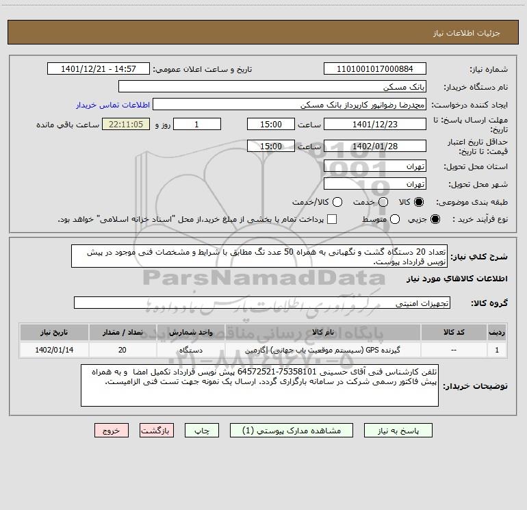شرح کلی نیاز: تعداد 20 دستگاه گشت و نگهبانی به همراه 50 عدد تگ مطابق با شرایط و مشخصات فنی موجود در پیش نویس قرارداد پیوست.