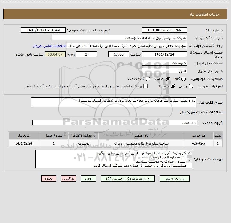شرح کلی نیاز: پروژه بهینه سازی ساختمان ترابری معاونت بهره برداری (مطابق اسناد پیوست)