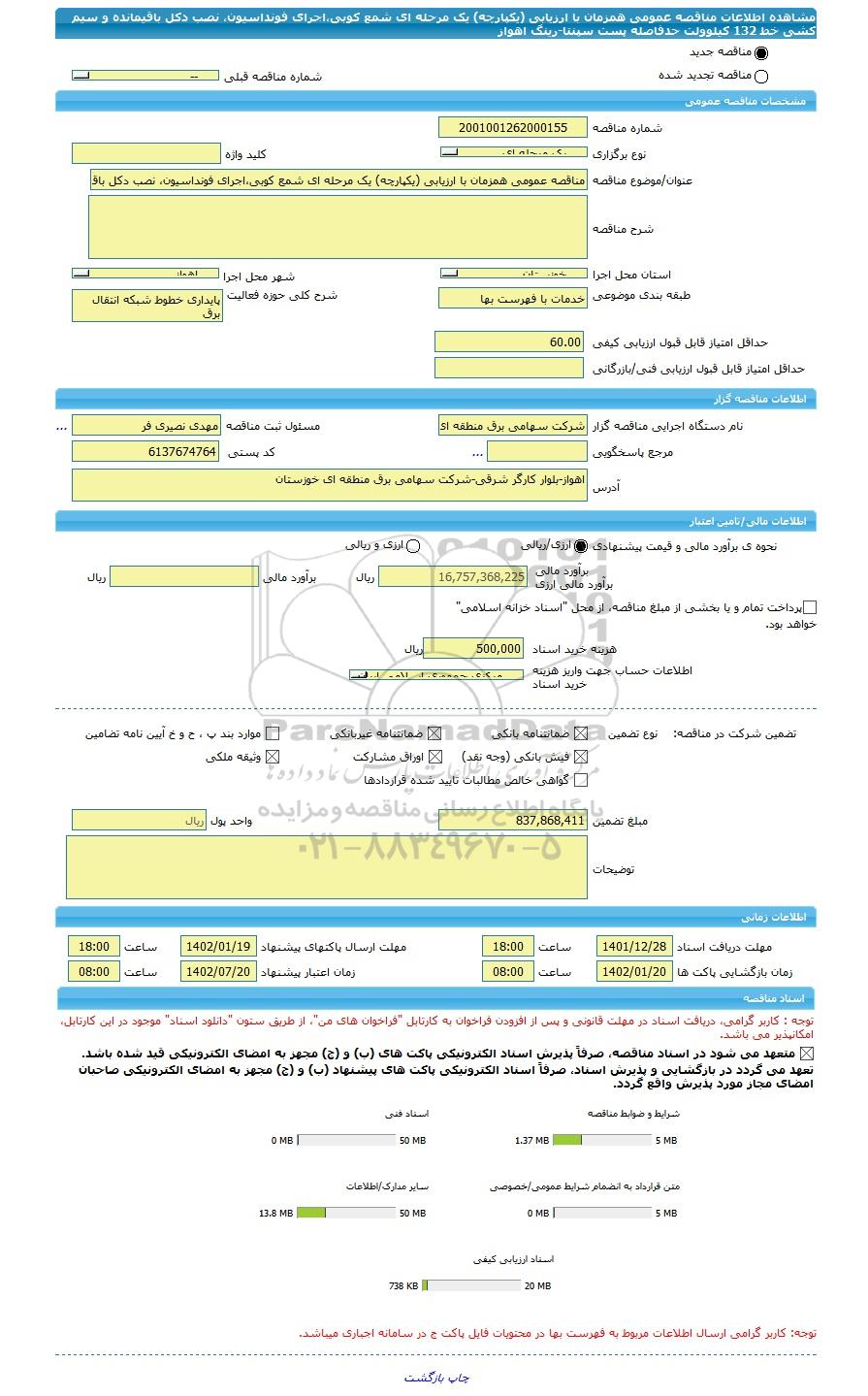 | مبلغ تضمین | 837,868,411 | واحد پول | ریال |