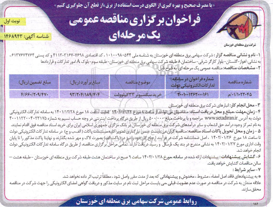 | 1022045/ 01/م | 2001001262000161 | خرید سکسیونر 33 کیلوولت | 93.204.189.404 | 4.660.209.470 |