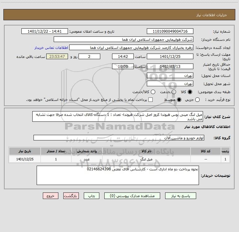 نام دستگاه خریدار:شرکت هواپیمایی جمهوری اسلامی ایران هما