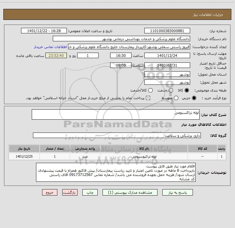 نام دستگاه خریدار:دانشگاه علوم پزشکی و خدمات بهداشتی درمانی بوشهر