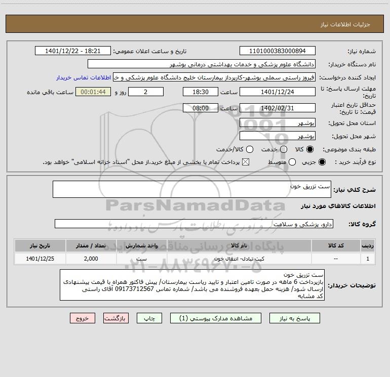 | 1 | -- | کیت تبادل- انتقال خون | ست | 2,000 | 1401/12/25 |