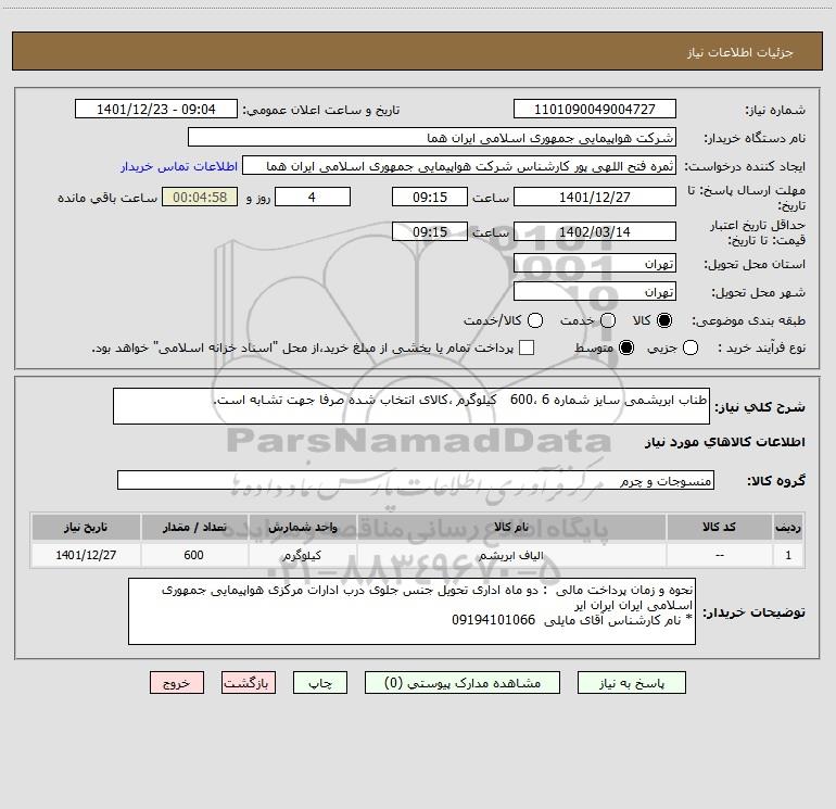 نام دستگاه خریدار:شرکت هواپیمایی جمهوری اسلامی ایران هما