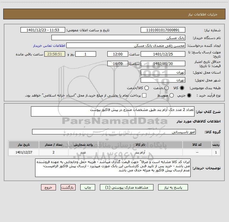 شرح کلی نیاز: تعداد 2 عدد جک آرام بند طبق مشخصات مندرج در پیش فاکتور پیوست