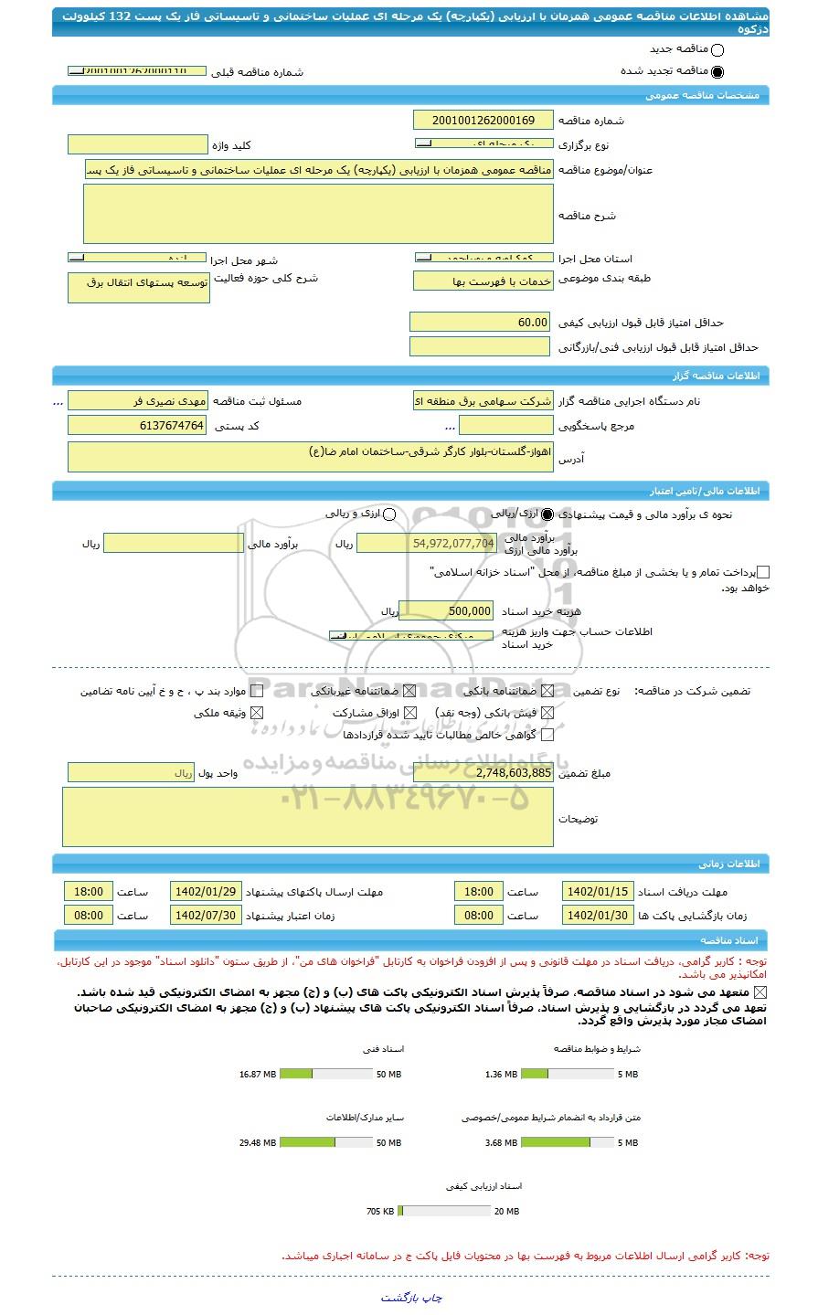 | مبلغ تضمین | 2,748,603,885 | واحد پول | ریال |